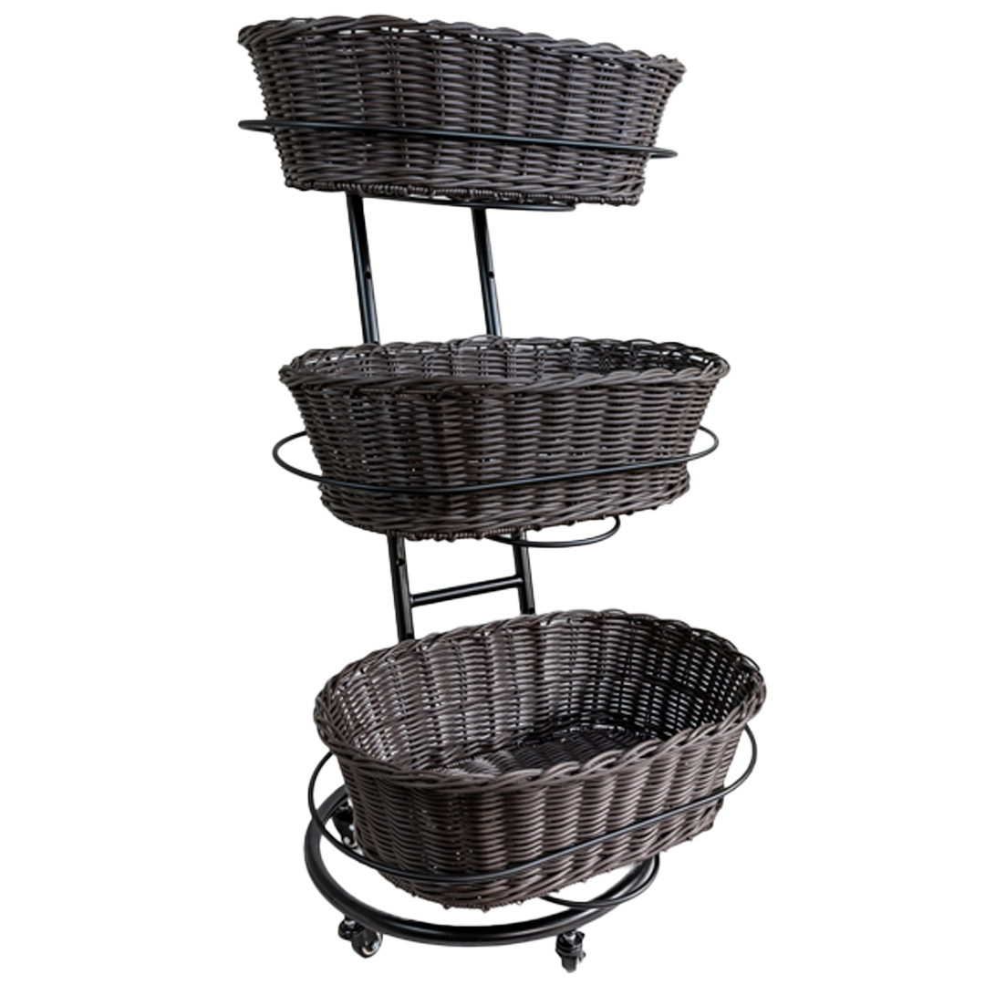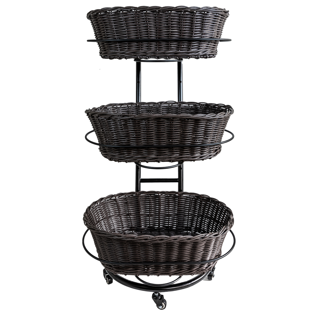 3-Tier Oval Polywicker Basket Stand – Chocolate